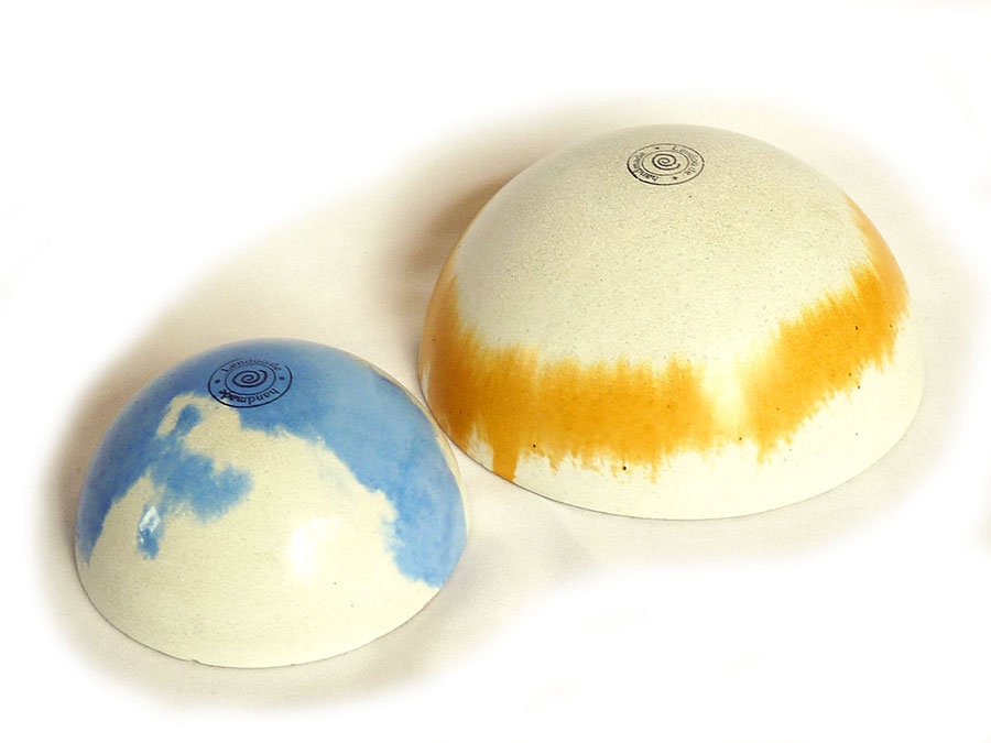 Diese wunderschönen dünnwandigen Betonschalen sind aus hochwertigem faserverstärktem Feinbeton gegossen. Der Boden der Schalen ist rund und sie schwingen nach Berühung zu jeder Seite leicht nach. Ein Umkippen ist durch den tiefen Schwerpunkt jedoch ausgeschlossen.