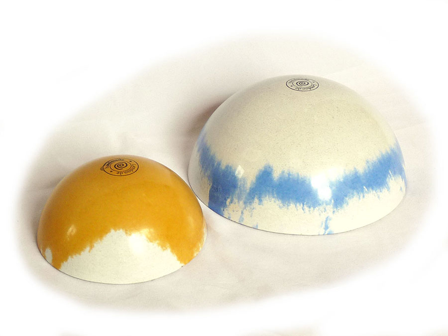 Diese wunderschönen dünnwandigen Betonschalen sind aus hochwertigem faserverstärktem Feinbeton gegossen. Der Boden der Schalen ist rund und sie schwingen nach Berühung zu jeder Seite leicht nach. Ein Umkippen ist durch den tiefen Schwerpunkt jedoch ausgeschlossen.