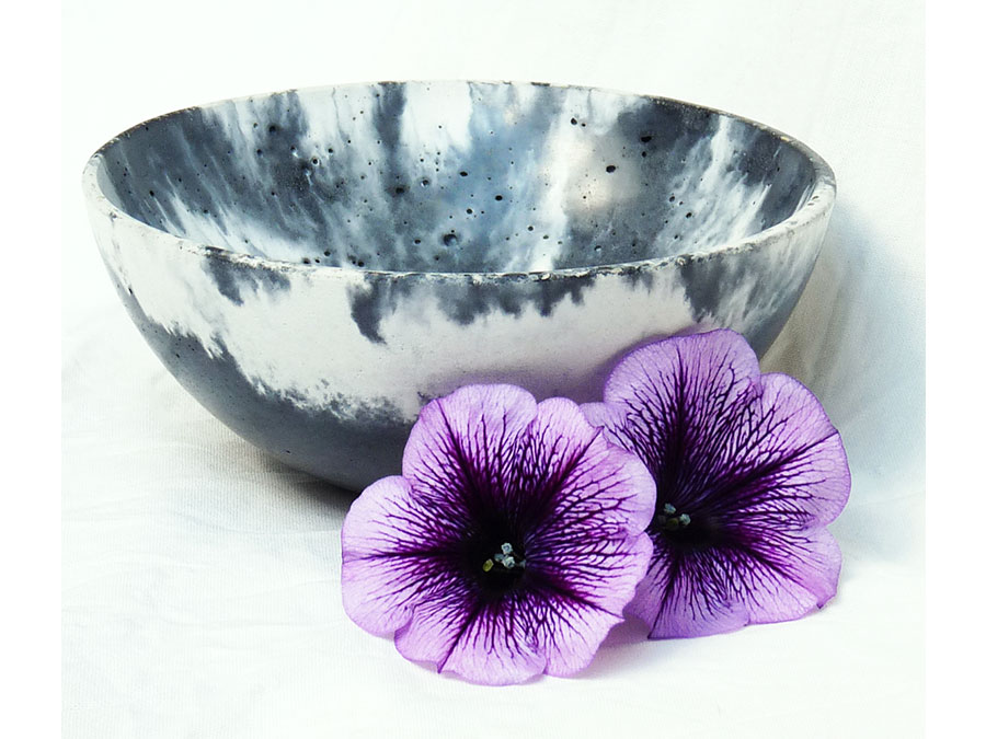 Kleine Unregelmäßigkeiten und Lufteinschlüsse sind charakteristisch für Beton und machen jede Schale zu einem Unikat. Bei der Verwendung von farbigem Beton entsteht eine wunderschöne Marmorierung, welche beim Herstellungsprozess nicht gezielt beeinflußbar ist.