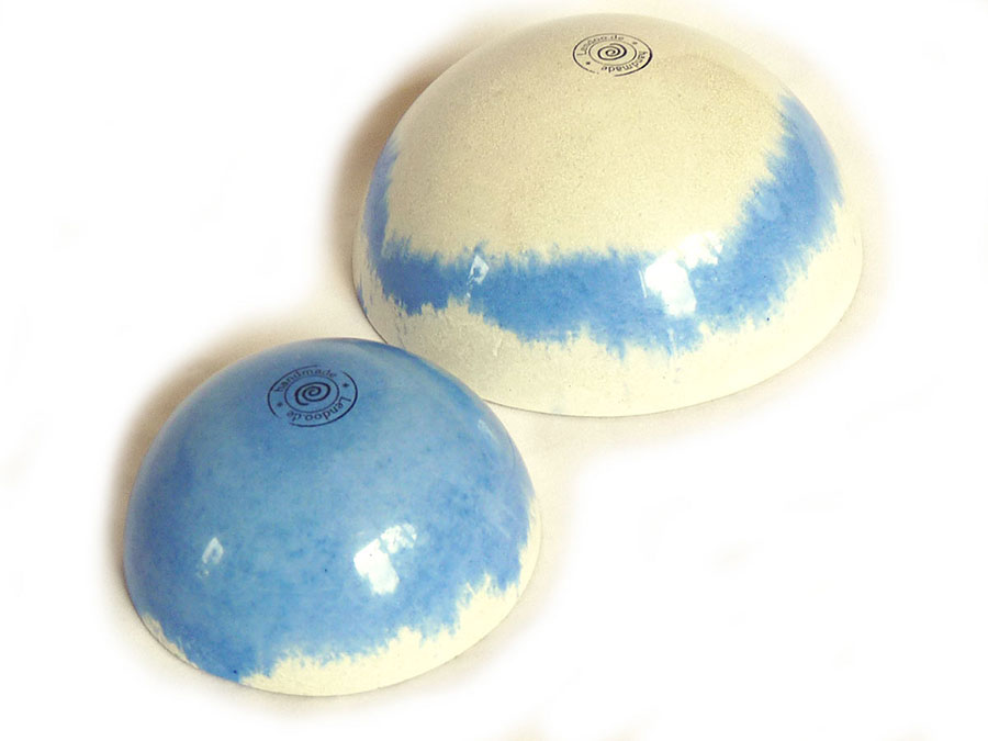 Diese wunderschönen dünnwandigen Betonschalen sind aus hochwertigem faserverstärktem Feinbeton gegossen. Der Boden der Schalen ist rund und sie schwingen nach Berühung zu jeder Seite leicht nach. Ein Umkippen ist durch den tiefen Schwerpunkt jedoch ausgeschlossen.