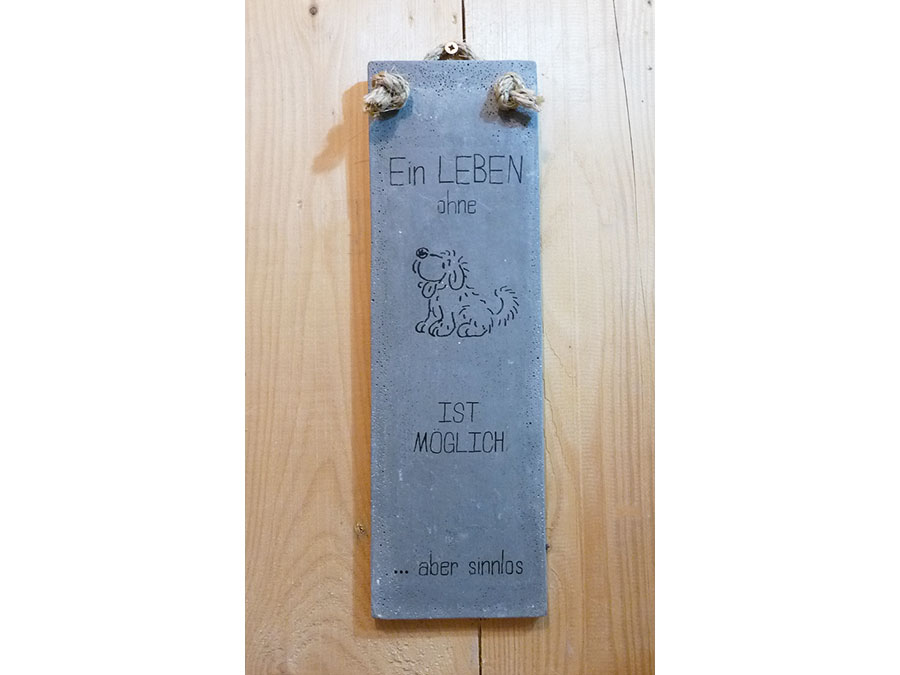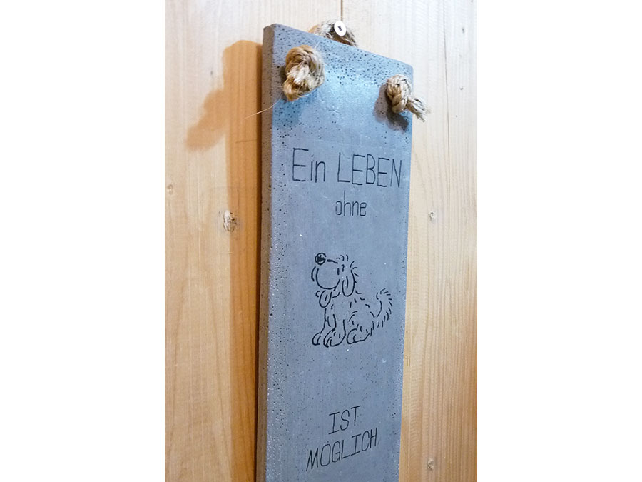 Lieferumfang: 1 Schild aus Beton (ohne Deko)