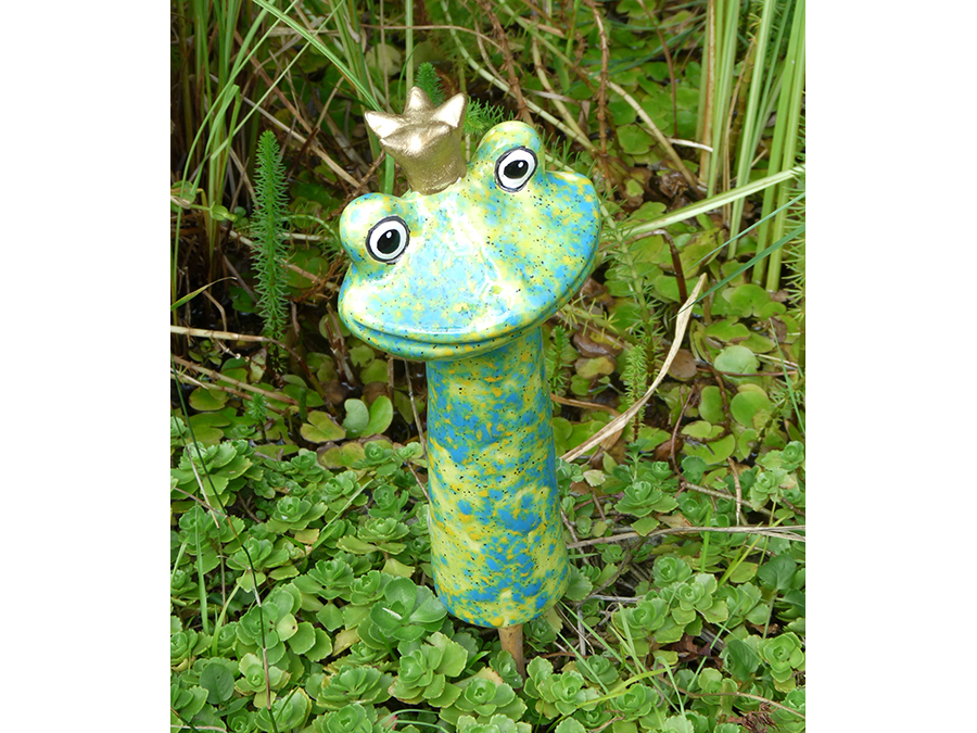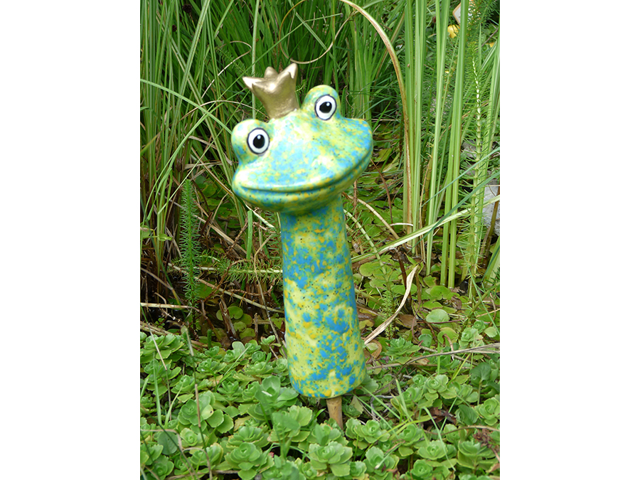 Wunderschöner Gartenstecker Froschkönig mit toller Effektlasur