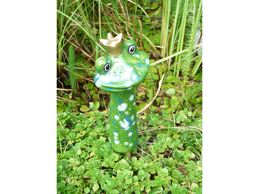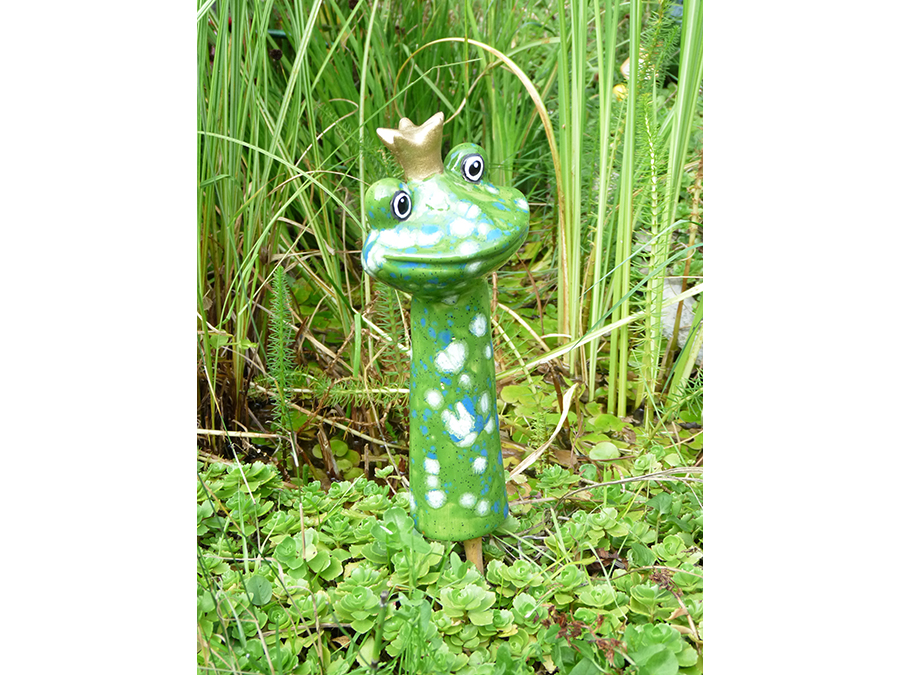 Wunderschöner Gartenstecker Froschkönig mit toller Effektlasur