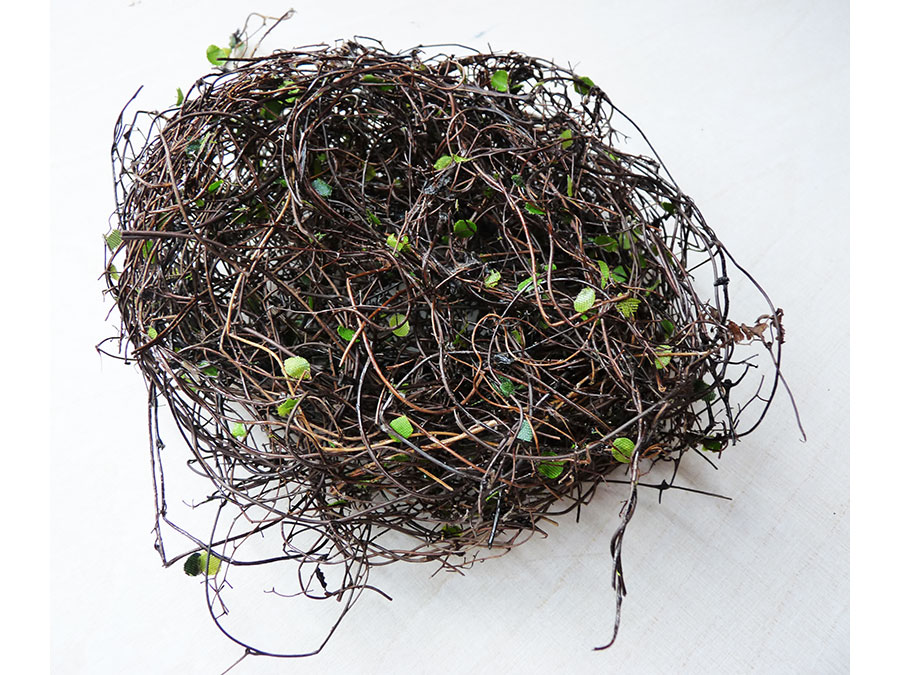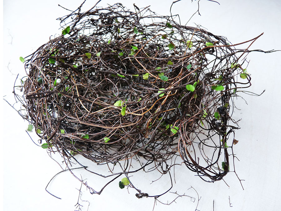 Dünnen Zweigen nachempfunden, mit kleinen grünen Blättern verziert. Kann nach Belieben auseinandergezupft werden.