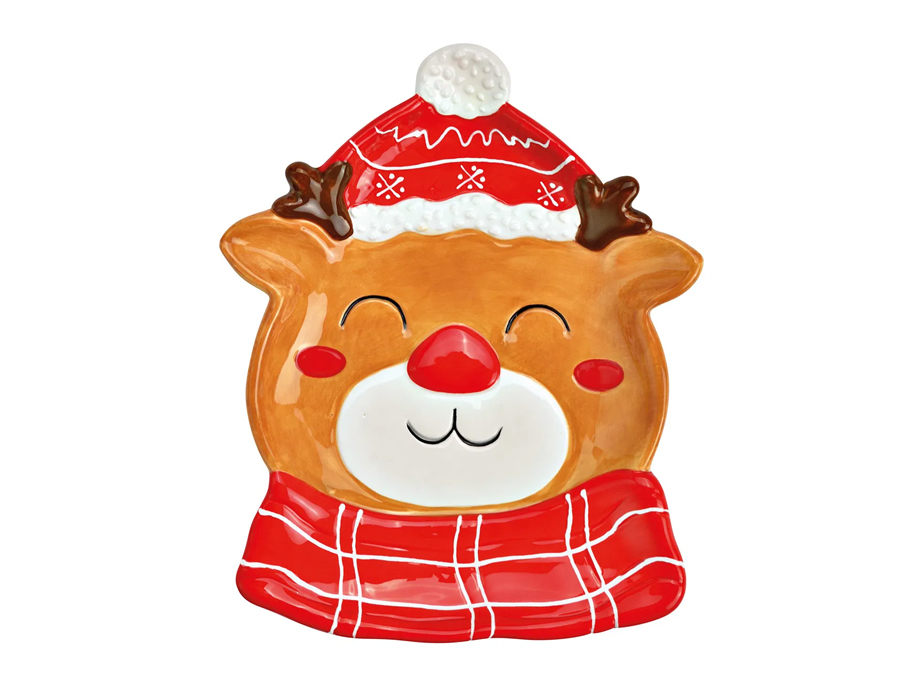 Hübscher Teller Rentier aus Keramik. Präsentieren Sie hier Kuchen und Gebäck. Sie werden es lieben