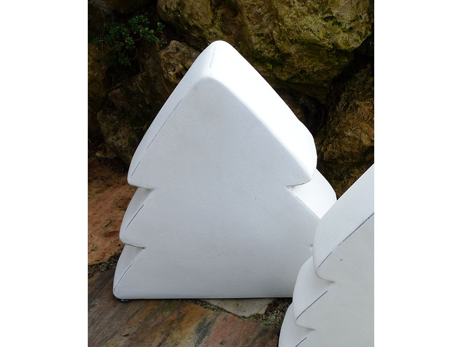 Der Baum ist in matt weiß gehalten. An den Kanten schimmert es dunkel durch.