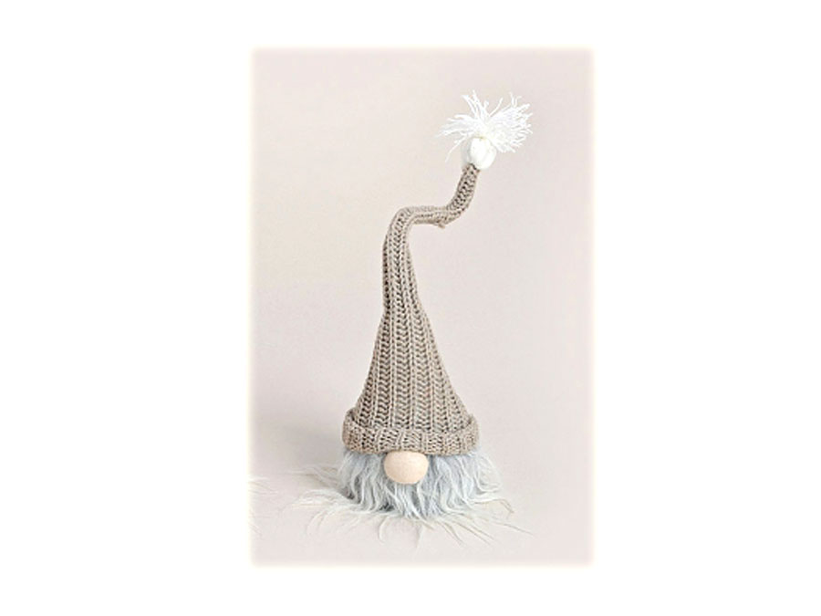 Dieser niedliche Geselle ist eigentlich schon ein Klassiker unter der Weihnachtsdekoration. Mit seinem zotteligen Rauschebart und der übergroßen Mütze läßt sich das Gesicht nur erahnen.